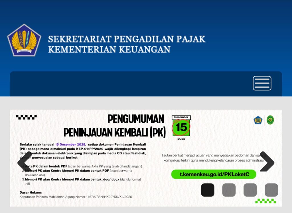 Kebijakan ini tertuang dalam Keputusan Panitera Mahkamah Agung Nomor 1467A/PAN/HK2.7/SK/XII/2025 tertanggal 1 Desember 2025, yang mengatur petunjuk pelaksanaan administrasi PK putusan Pengadilan Pajak melalui sistem elektronik atau e-Tax Court.