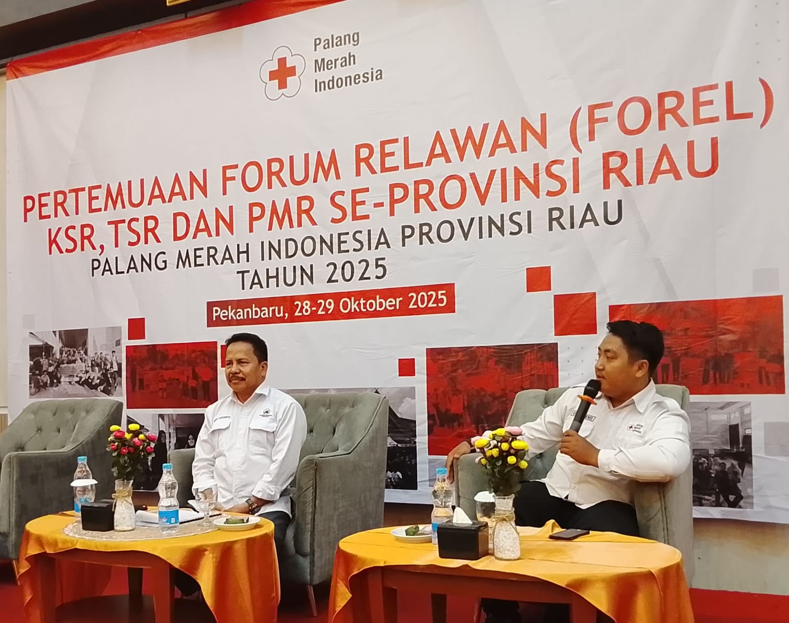 Hal ini terungkap saat pertemuan Forum Relawan (Forel), Korp Sukarela (KSR), Tenaga Sukarela (TSR), dan Palang Merah Remaja (PMR) se-Provinsi Riau, tanggal 28-29 Oktober 2025 di Hotel Grand Suka Jalan Sudirman Pekanbaru, yang dihadiri oleh 50 relawan PMI Kabupaten/Kota se-Riau.