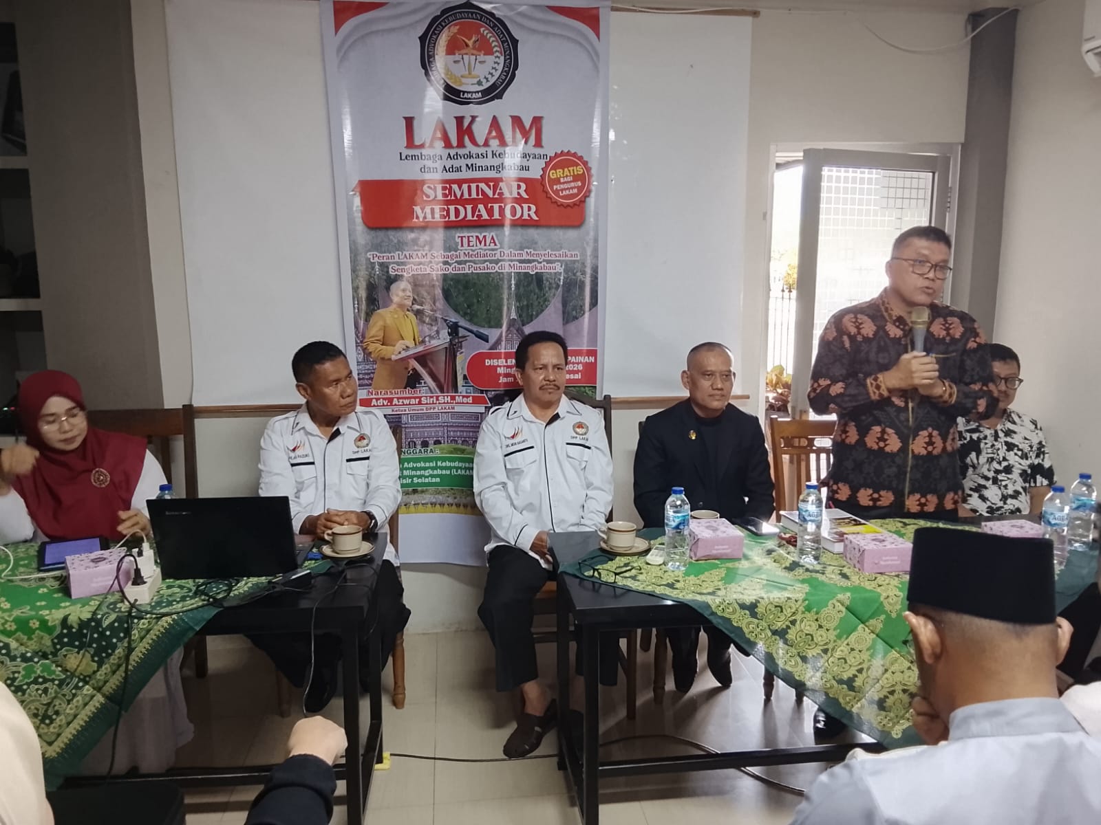 Seminar Mediator diselenggarakan oleh Lembaga Advokasi Kebudayaan dan Adat Minangkabau (LAKAM) DPD Pesisir Selatan, dihadiri lebih 60 peserta yang berasal dari Kota Padang, utusan perwakilan LAKAM Kecamatan se-Kabupaten Pessel mulai dari Tarusan sampai Tapan, Tokoh Masyarakat, Tokoh Agama, Tokoh Perempuan (Bundo Kanduang) dan Tokoh Pemuda.