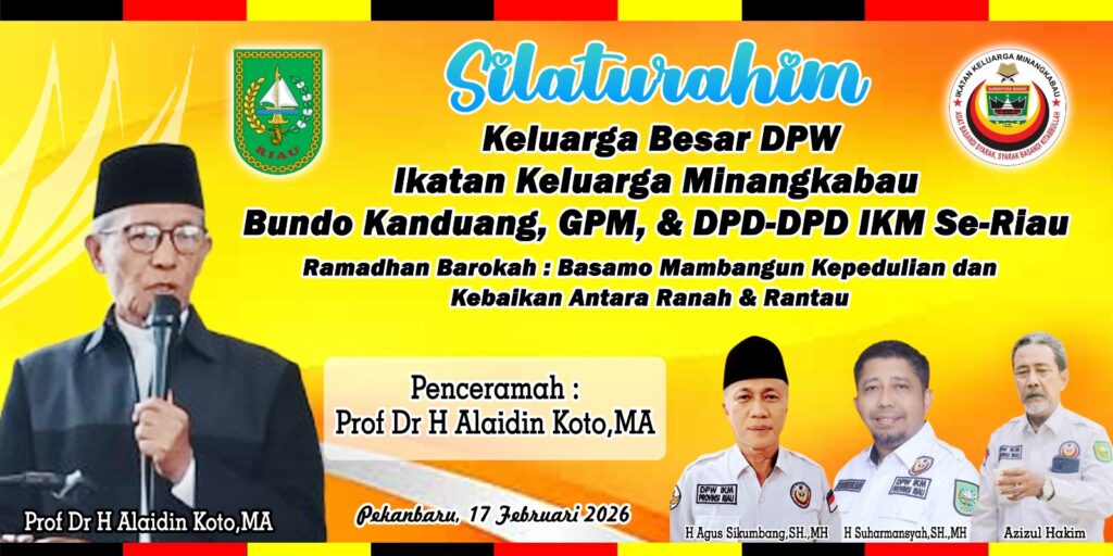 Pekanbaru: DPW Ikatan Keluarga Minangkabau (IKM) Riau untuk memasuki bulan Suci Ramadhan 1447H mengadakan kegiatan silaturahim bersama dengan Penceramah Prof Dr H Alaidin Koto,MA, Selasa (17/02/2026) di sekretariatnya Jln Pelanggi Arifin Achmad Pekanbaru.