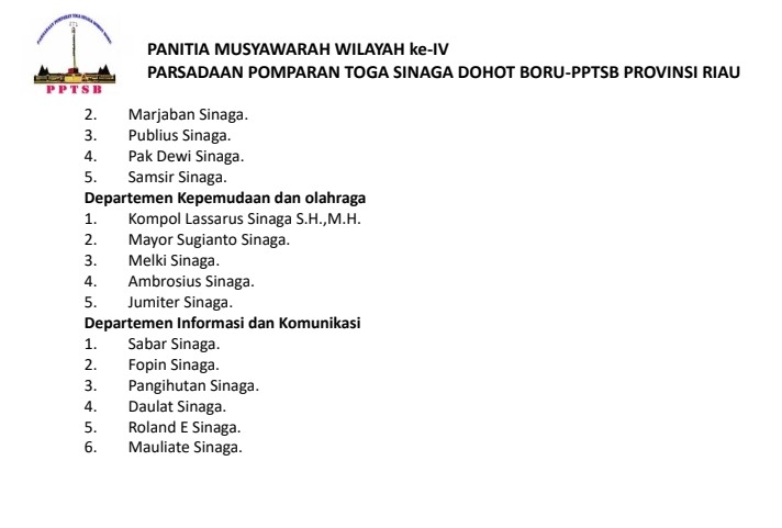 Berikut Daftar nama-nama pengurus PPTSB Wilayah Riau untuk masa bakti 2026-2030: