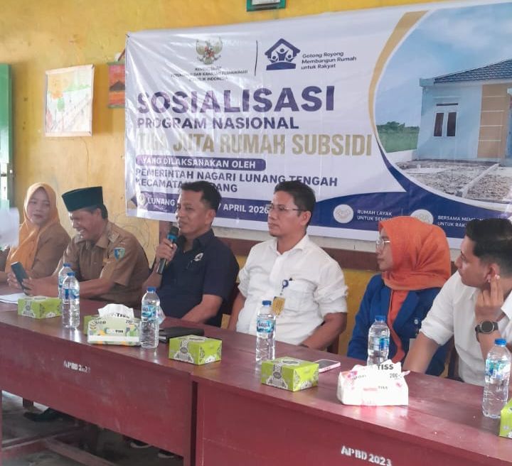 Lunang: Wali Nagari Lunang Tengah mengadakan acara sosialisasi program 3 juta rumah dengan mengundang Narasumber ASPRUMNAS Riau & Bank Nagari Tapan. Demikian keterangan Roli Nanda Sekretaris Nagari Lunang Tengah, Senin (27/04/2026).